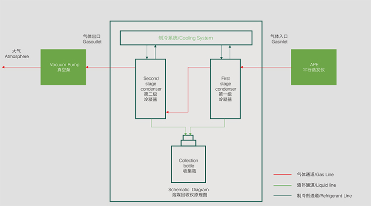 “干式”低溫冷凝——溶劑回收更高效 APE 系列不僅可以選擇傳統(tǒng)的冷卻循環(huán)水機(jī)搭配玻璃冷凝器對(duì)溶劑蒸汽進(jìn)行冷凝回收,還可以選配 eSR220S 溶媒回收儀對(duì)溶劑蒸汽進(jìn)行高效冷凝回收,溶媒回收儀采用“干式”低溫冷凝技術(shù),無需使用冷卻循環(huán)液,-20℃低溫下對(duì)溶劑蒸汽直接進(jìn)行冷凝,特別適合低沸點(diǎn)溶劑高效冷凝收集。